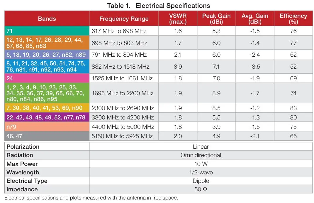 • 5.3dBi@617-698MHz